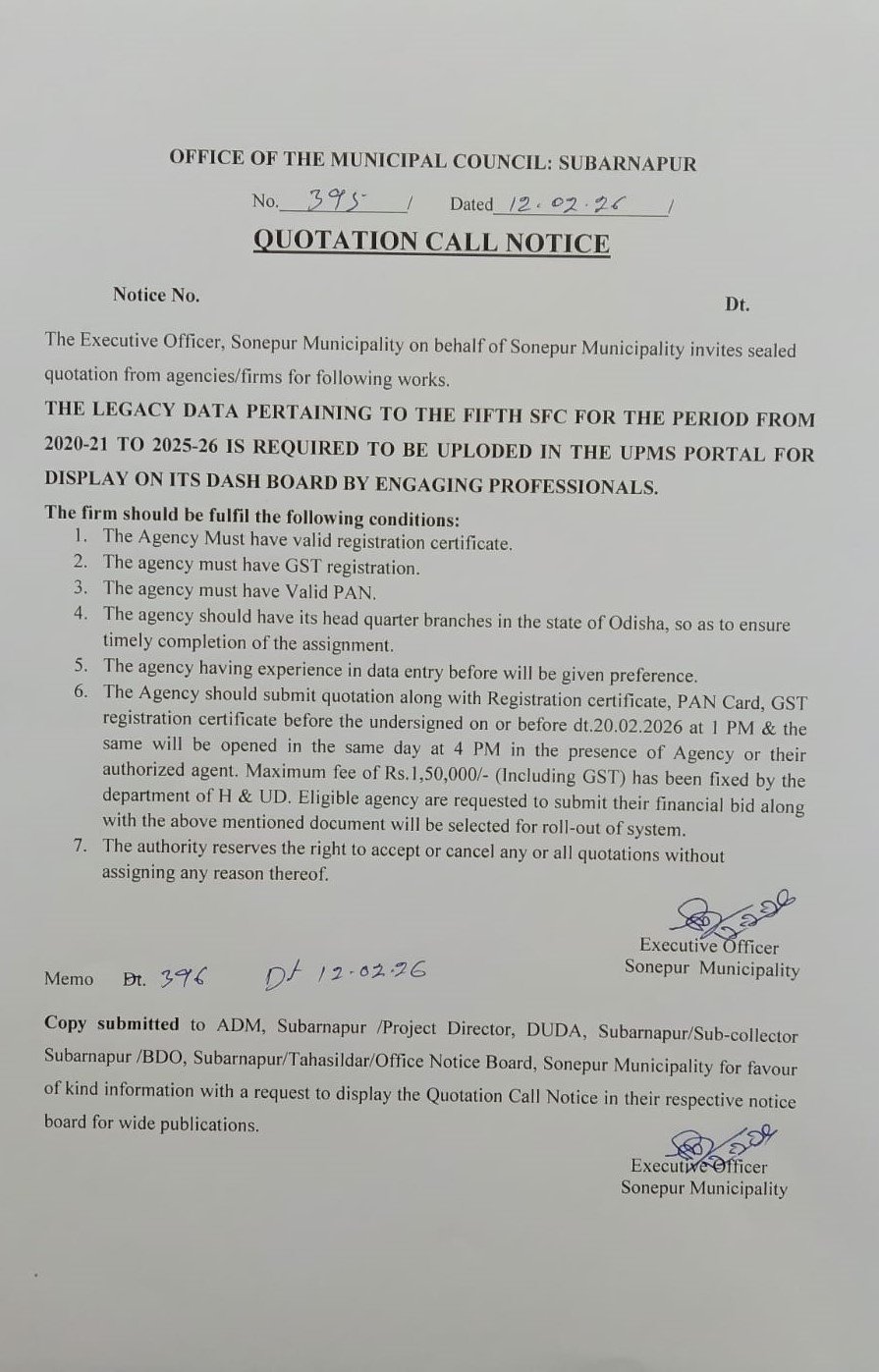 | 2 | 395 | The Legacy Data Pertaing to the Fifth SFC For the period from 2020-21 to 2025-26 is required to be Uploaded in the UPMS Portal for Display in its Dash Board by Engaging Professionals | 12/02/2026 | 20/02/2026 | 20/02/2026 | 4:00 pm | Download ![]() |